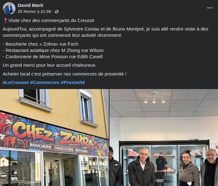 Voici une petite semaine, M. le Maire s’est rendu chez des commerçants qui ont commencé leur activité récemment. Ce n’est pas moi qui le dis, c’est M. le Maire lui-même.